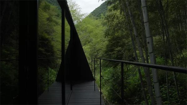上到二层,立刻被确定的形体包裹,光很暗,人们围坐吃饭,只有餐桌被打亮。窗外只裁切出竹林的片段,无头无尾,变得抽象。